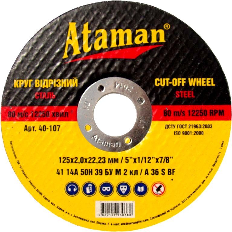 Круг по металлу отрезной 125x2.0 мм. Ataman