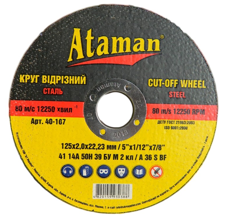 Круг по металлу отрезной 125x2.0 мм. Ataman™