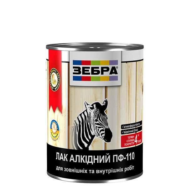 Лак алкидный ЗЕБРА ПФ-110 - 0.8 кг.